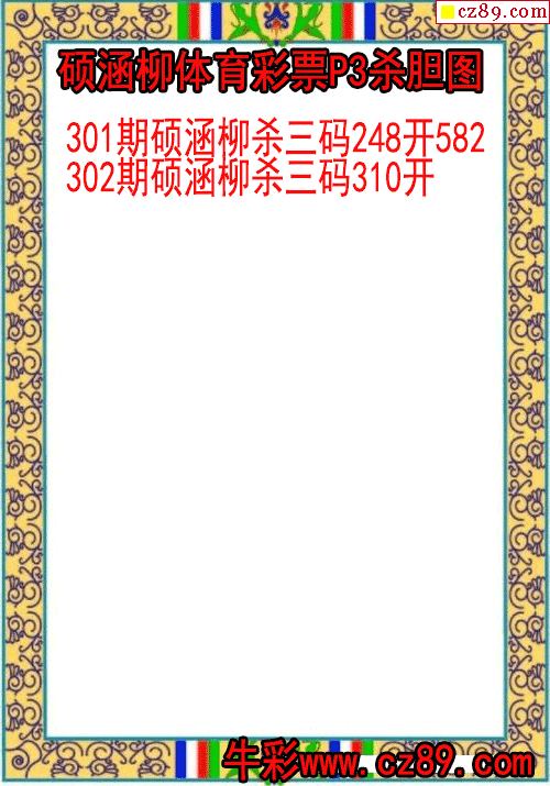 > 25年302期硕涵柳体育彩票P3杀胆图