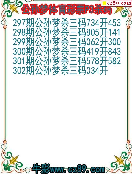 25年302期公孙梦体育彩票P3杀码图