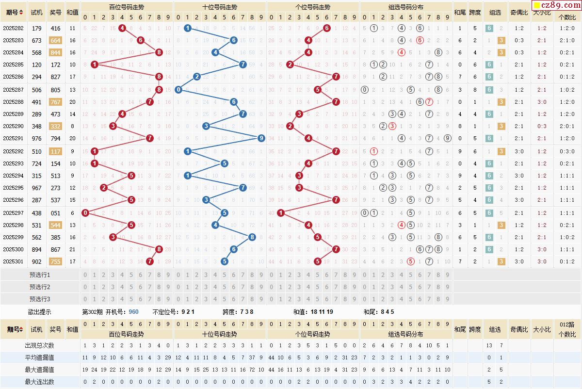 > 302期福彩3D开奖号码走势图分析